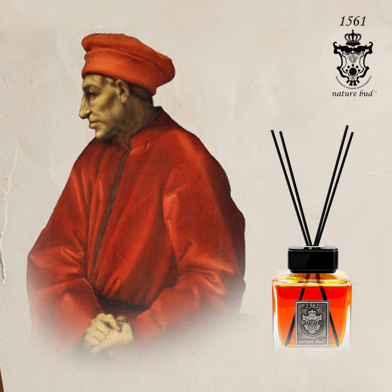 コジモ・メディチのように、変革の鍵、貴族の伝説。トップノートのベルガモットの爽やかさ、ミドルノートのジンジャーとグレープフルーツの知恵と情熱、そしてボトムノートのアンバーの安定感は、メディチ家をヨーロッパの頂点に導いたコジモの限りない資金力と芸術への貢献を象徴している。
